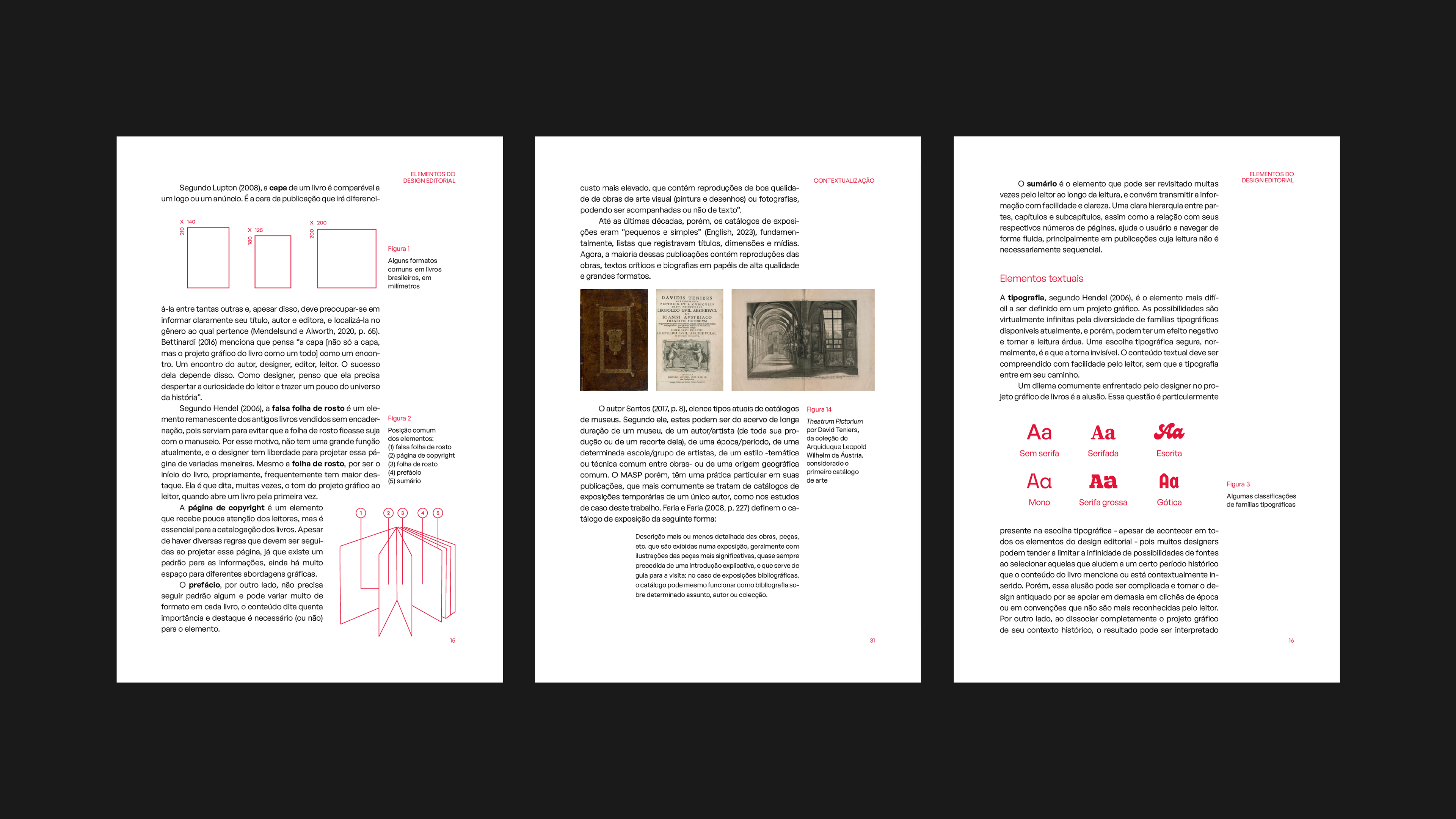 This work sought to investigate the editorial design of art catalogs, based on publications from the Assis Chateaubriand Museum of Art of São Paulo (MASP), and their relationship with the work of the artists in question in the construction of meaning in the reading experience. Through a content analysis, based on a bibliographic survey and case studies of three exhibition catalogs, was observed how each project approaches the elements of editorial design in different ways, building parallels with the style and media of each artist. Each catalog, in its own way, becomes an extension of the works it represents and editorial design acts not just as a presentation tool, but as a means by which the essence of each artist is captured and communicated.